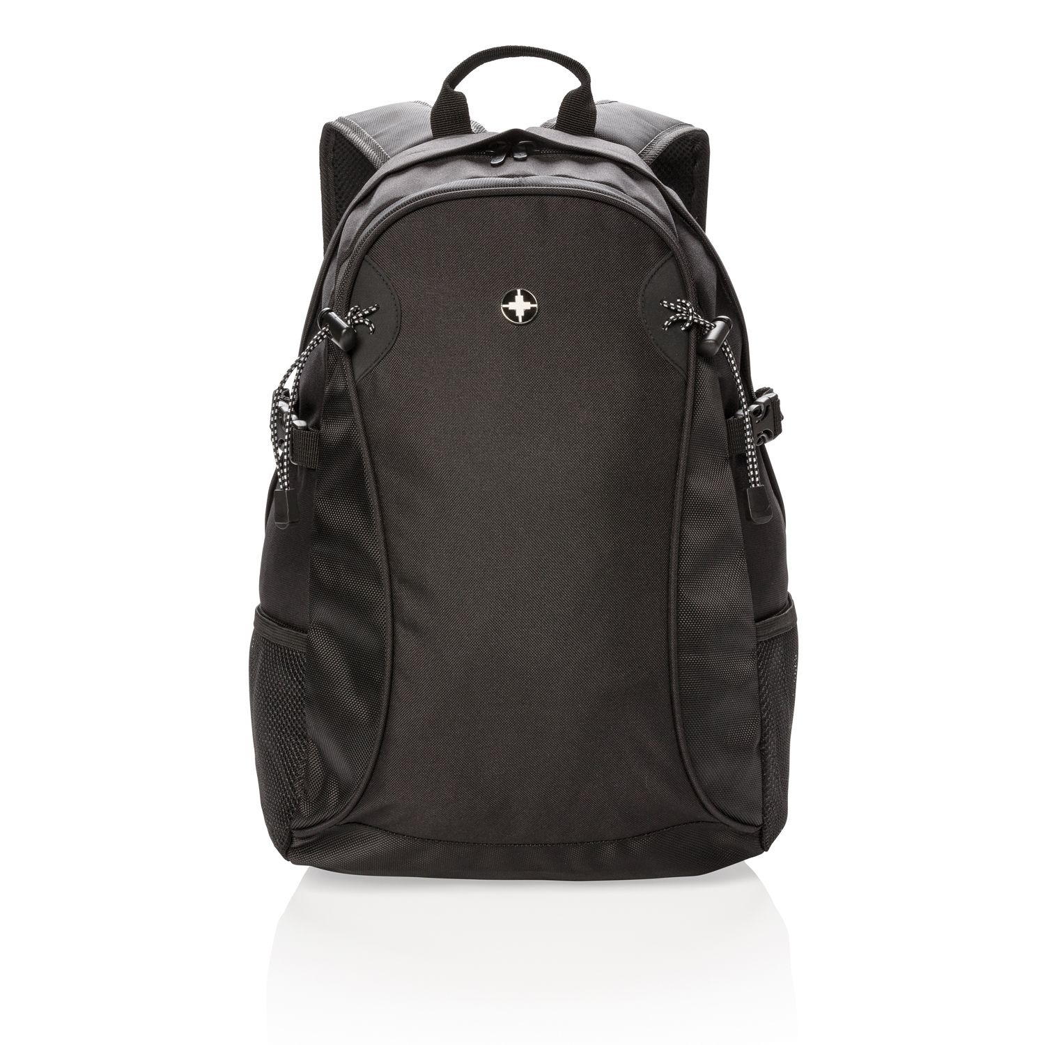 Рюкзак для путешествий Swiss Peak изготовлен из прочного полиэстера двух видов: 600D и 1680D. В рюкзаке предусмотрено одно большое отделение, уплотненная удобная спинка, боковые карманы-сетка для бутылки воды или других мелочей. Не содержит PVC.