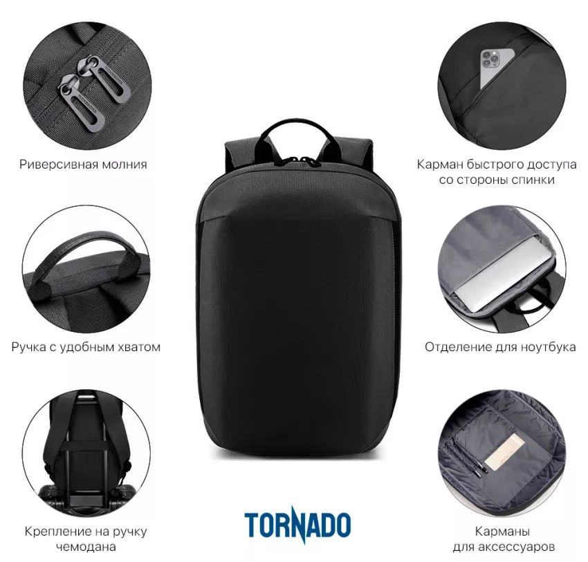 Внутри отсек для хранения ноутбука, карманы для аксессуаров и мелочей, объем 13 литров.