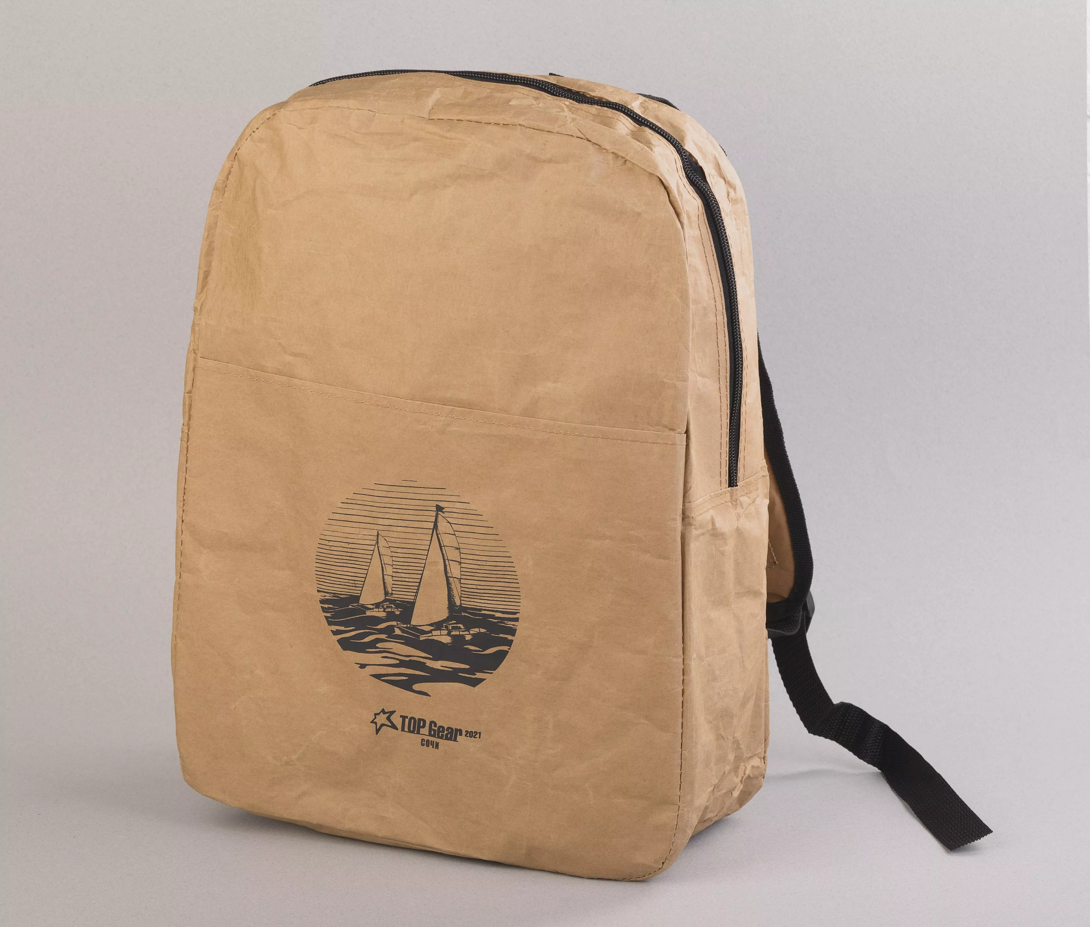 Экологичный дизайнерский рюкзак выполнен из необычного крафт-материала, который устойчив к влаге.
