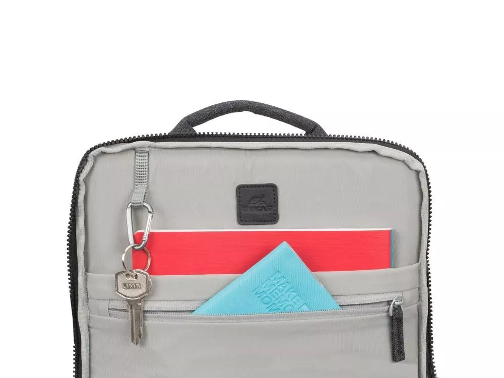• Передний карман на молнии для хранения аксессуаров, зарядного устройства, авторучек, смартфона.