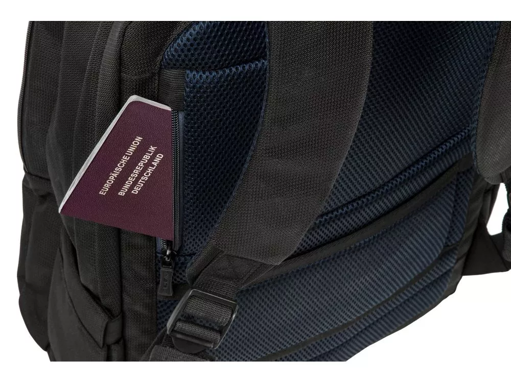 • На задней стенке имеется ремень крепления к багажной сумке и скрытый карман на молнии для паспорта, бумажника.