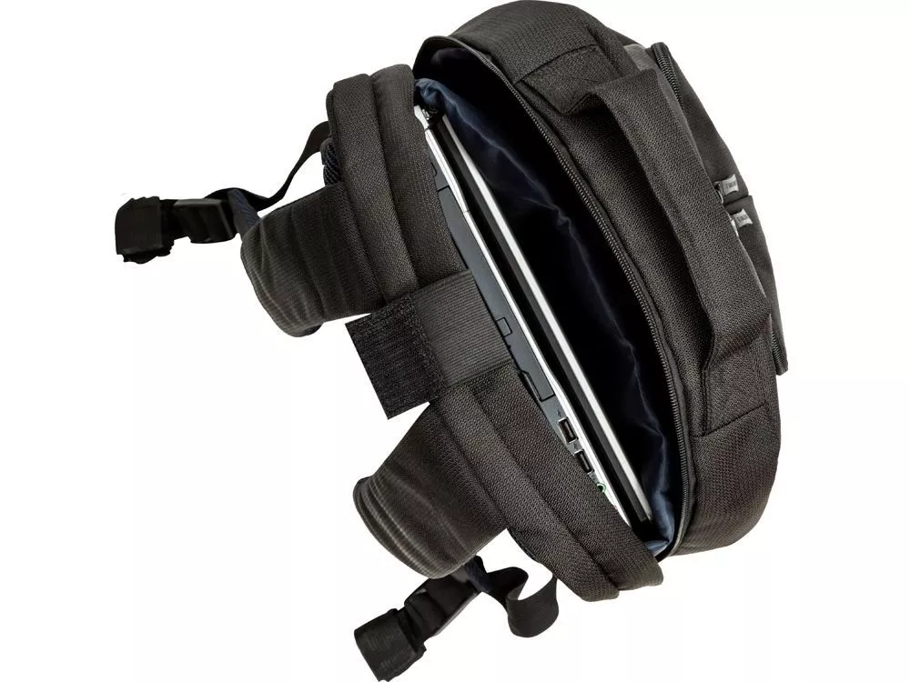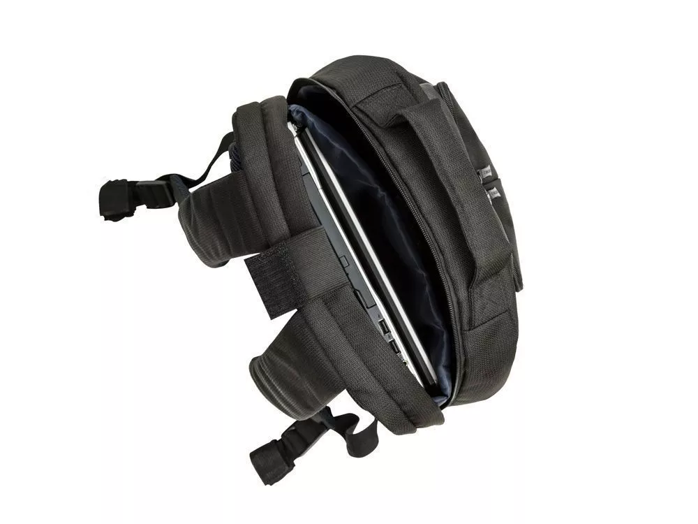 • Основное отделение для ноутбука с вертикальной загрузкой, имеет мягкие стенки и ремень для надежной фиксации ноутбука до 17.