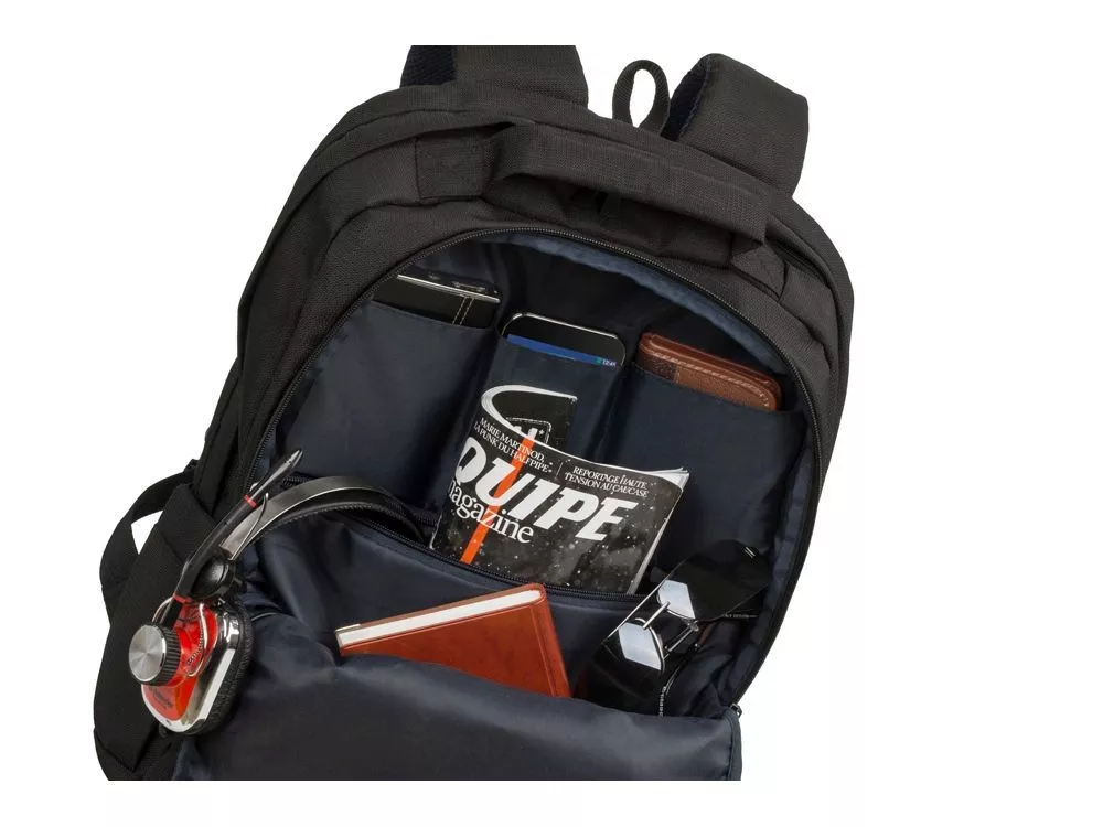 • Два внешних передних кармана на молнии. Один для хранения аксессуаров, зарядного устройства. Второй оборудован панелью-органайзером для хранения визитных карт, авторучек, смартфона.