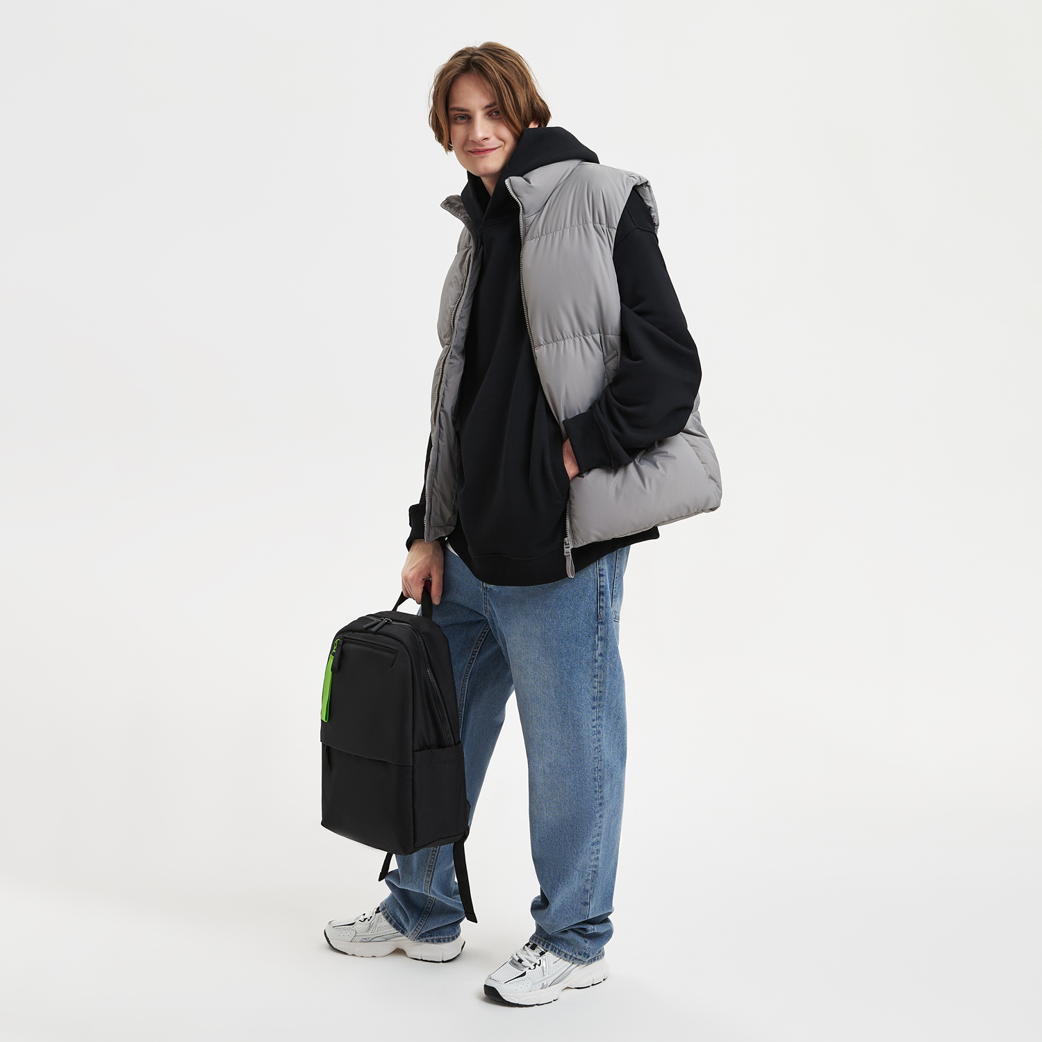 Вместительные передние карманы, один из которых на скрытой молнии, позволяют хранить самые нужные вещи под рукой. Боковые карманы с эластичными фиксаторами надежно удерживают бутылку и другие предметы. Основное отделение оснащено карманом для ноутбука до 15,6” с защитным ремнем; два кармана для мелочей и отдельные отсеки для ручек помогают организовать все необходимое внутри рюкзака.