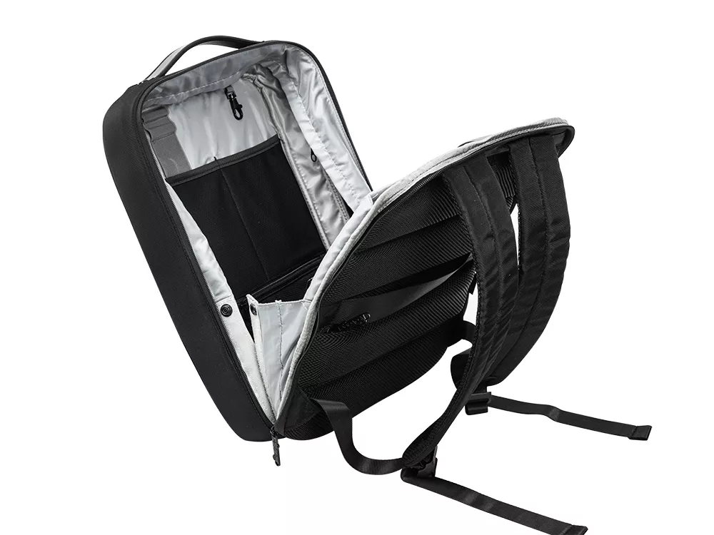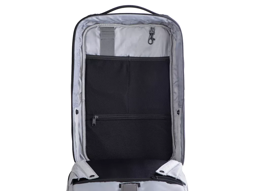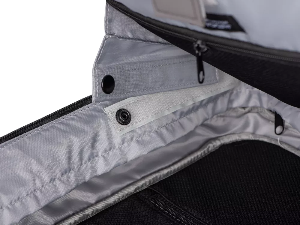 - степень раскрытия рюкзака регулируется боковыми фиксаторами на липучках и кнопках