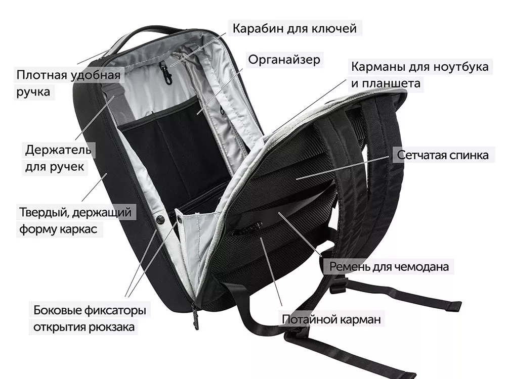 - карманы для ноутбука и планшета на эластичных креплениях