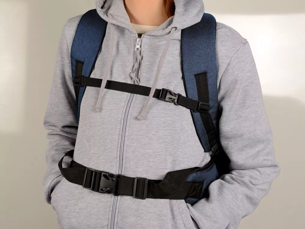 - лямки регулируются по длине и фиксируются пряжками на груди и поясе для снижения нагрузки на спину,