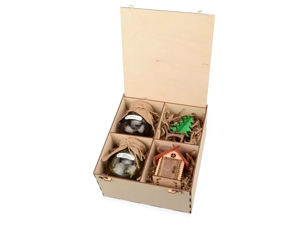 Коробка выполнена из березовой фанеры и послужит отличным дополнением экоподарка.