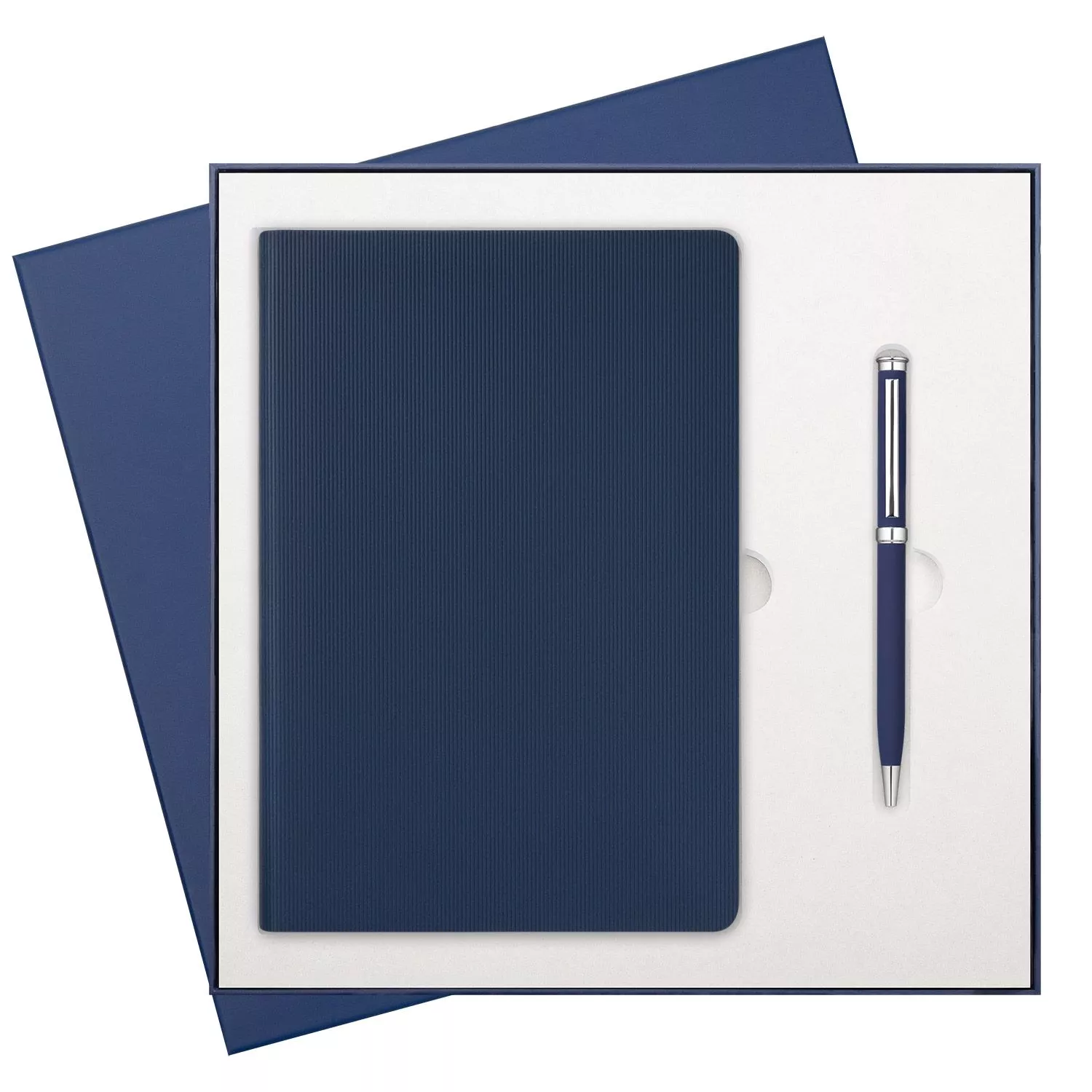 Хорошо продуманный дизайн подарочной коробки оформит и завершит внешний вид любого подарка. Молочно-белый ложемент и обрамляющая упаковка глубокого синего цвета будут сочетаться с большинством представленных аксессуаров.
