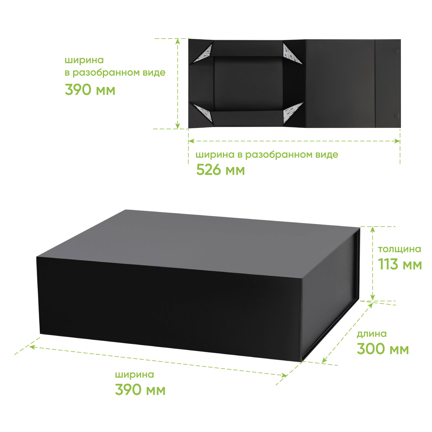 Идеальные размеры для оформления подарочных и брендовых наборов. Простая и надежная сборка без лишних усилий. В сложенном виде коробка занимает минимум места, что значительно сокращает расходы на хранение и логистику.