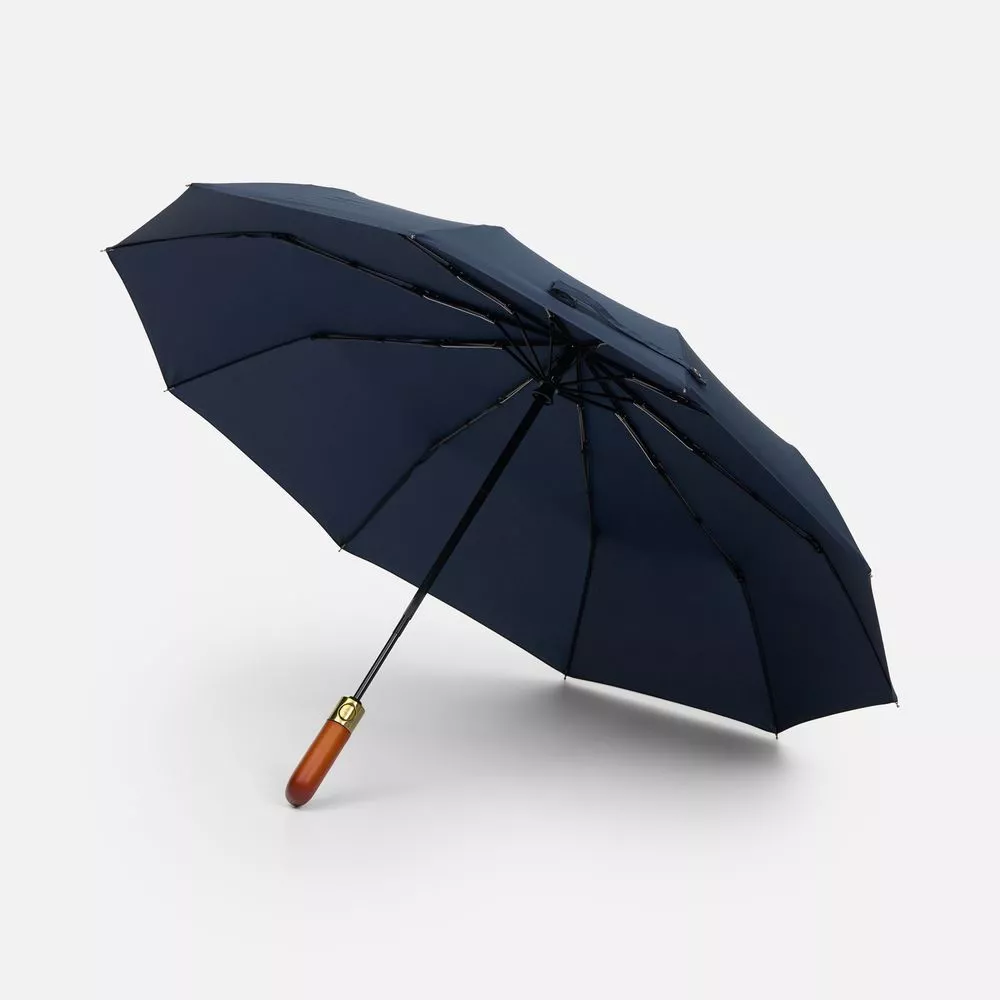 Автоматический механизм позволяет раскрыться за секунду. Плотная ткань купола обеспечивает высокую прочность и устойчивость к разрывам, при этом оставаясь легкой. А ручка из натурального дерева обеспечивает комфортный захват и добавляет зонту благородности.