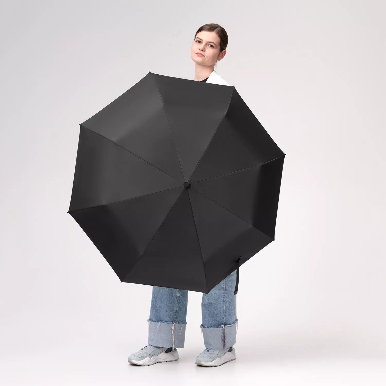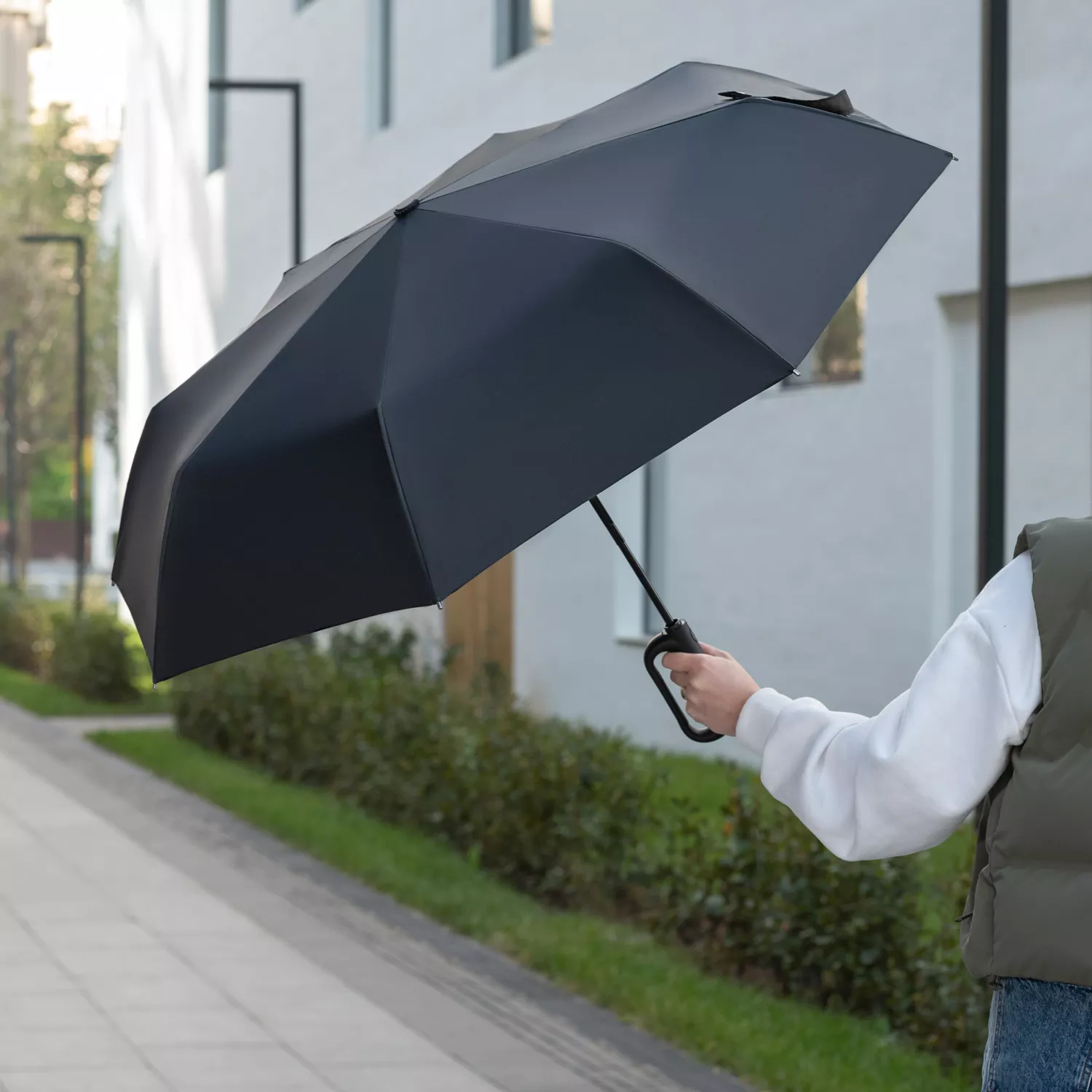 Надежный автоматический механизм в 3 сложения, 8 спиц из стеклопластика.