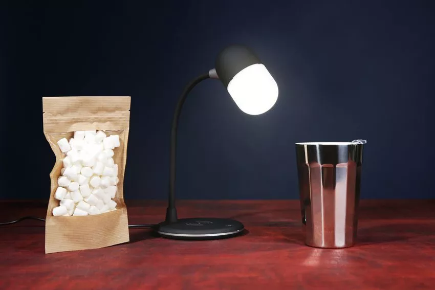 - лампа с колонкой и беспроводной зарядкой, материал металл, пластик с покрытием софт тач, гибкая ножка, три режима свечения, встроенный динамик, беспроводная зарядка в основании
