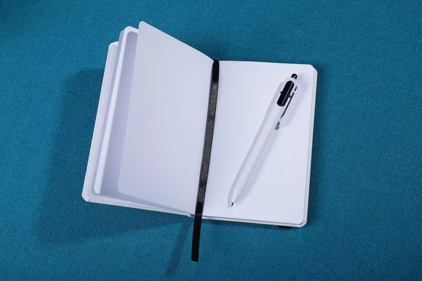 - ежедневник А5, твердая обложка из искусственной кожи, контрастная резинка, блок недатированный