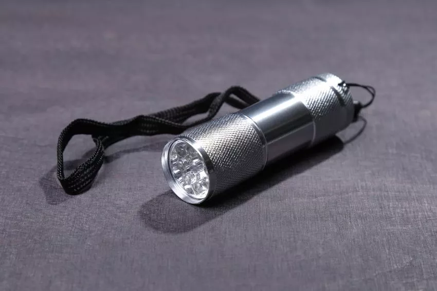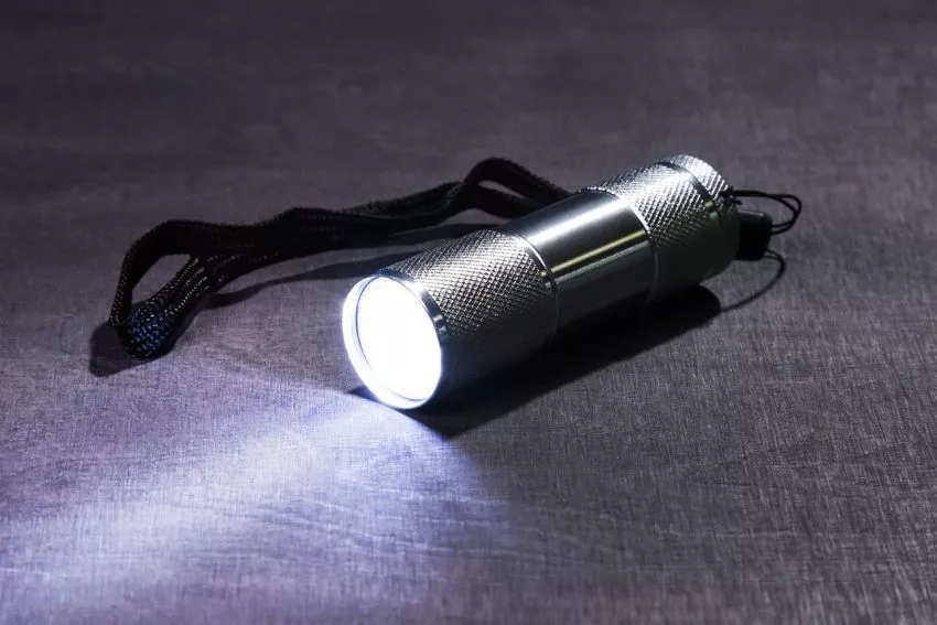 - фонарь светодиодный, материал алюминий, длина 8,8см, питание от 3х батареек ААА