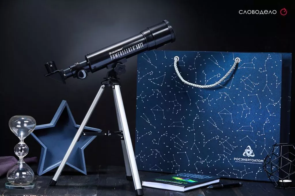 Оригинальный подарок – набор для наблюдение за небесными светилами. В состав входит: телескоп, книга Стивена Хокинга и подвижная карта звездного неба. Подарок прекрасно подойдет как на Новый год, так и на 23 февраля, руководителю, коллегам.