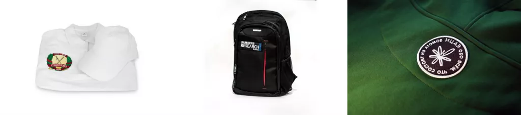 Метод можно применять на большом разнообразии тканей. Для данной методики подходит большинство тканых и нетканых материалов – от трикотажа до кожи. Но если материя слишком тонкая и стягивается нитью при работе или же желаемое место нанесения принта труднодоступно, то можно нанести пошив на шеврон, который потом закрепится на полотне. Такой способ – это отличная идея для того, чтобы брендировать одежду, ведь нашивки можно закрепить на вещах в любой момент с помощью термического клеевого слоя, при этом никак не воздействия на само изделие.